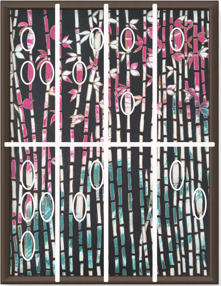 hint one The elements in this painting are more than decoration. A message is hidden in plain sight within the composition. Look closely at the lanterns in the bamboo garden. Their placement may be more deliberate than it first appears.